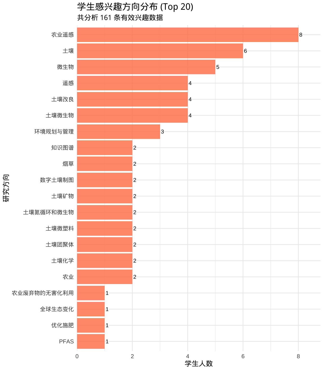title = "学生感兴趣方向分布 (Top 20)",
